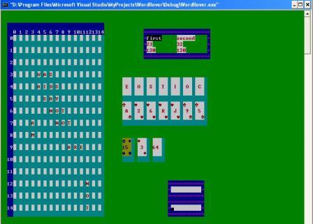 Also, players can use a suite or group from their cards as a joker. The joker can be used to represent any desired card. For example, King + King + King = ¡®A¡¯ Thus the player would score 10 + 10 + 10 + The value of A = 30 + 2 = 32. Hence the player would get 32 points for the ¡®A¡¯. After the player¡¯s turn is over the cell on the board with the ¡®A¡¯ would return back to the original value of ¡®A¡¯ = 2. Thus, only the player using the Joker would benefit from using the Joker. The Joker can be used to represent any letter from ¡®A¡¯ to ¡®Z¡¯. A minimum of 3 cards is needed to make a suite or a group, thus the player can benefit from a maximum of two Jokers at once. The player can use the two Jokers together to represent 2 consecutive letters or be used on the same word. If a players manages to use 7 cards together to form a Joker then the player gets another bonus of 50 points, this is like a bingo for scrabble (Forming a 7 letter word).