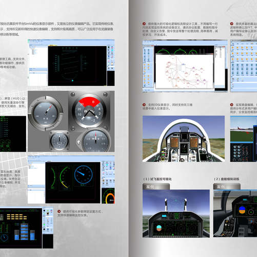 虚拟仪表(SimVeter)既是可视化仿真软件平台(SimViz)的仪表显示部件,又是独立的仪表制作产品。它实现传统仪表、平显及多功能监控画面的实时显示,支持所见即所得的可交互的图形界面,支持照片级高画质,可以广泛应用于在武器装备研制、飞机座舱仿真、教学维修训练等领域。