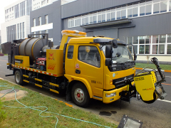 AD5091TYHRQ型路面养护车是一种多种用途沥青路面修补设备,具有沥青混合料再生、新料搅拌、沥青加热喷洒、乳化沥青喷洒、路面加热及压实、发电、电力输出、液压输出等功能。也用于检查井周边路面的修补作业。热料仓用于对冷料加热或新料拌合,发电机组除满足热料仓加热控制系统外,还为外接电力机具提供电源,如可配电动切割机、电镐等。该车同时配有乳化沥青箱及自动喷洒系统。修补路面所用沥青混合料由滚筒式再生器输出,混合料再生速度快,适合于沥青路面各种局部病害的修补。底部喷洒乳化沥青或热沥青,添加再生沥青料,然后整平并压实。整个再生作业过程,不需其它辅助设备,可独立完成破损路面的修补工作。