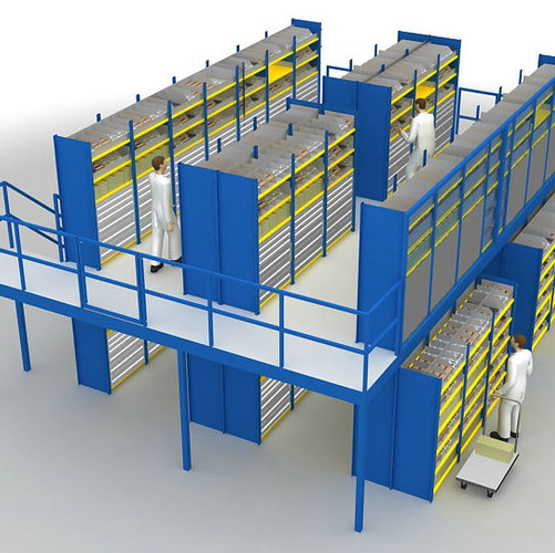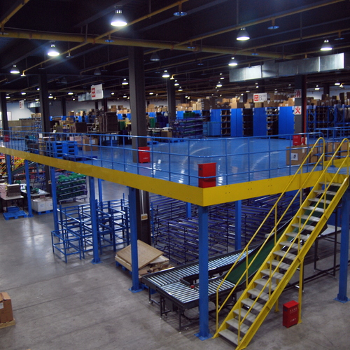 恒昌阁楼货架系统,通常利用中型搁板式货架或重型搁板式货架作为主体支撑加上楼面板(根据货架单元的总负载重量来决定选用何种货架),楼面板通常选用冷轧型钢楼板、花纹钢楼板或钢格栅楼板。近几年多使用冷轧型钢楼板,它具有承载能力强、整体性好、承载均匀性好、精度高、表面平整、易锁定等优势.有多种类型可选,并且易匹配照明系统,存取、管理均较为方便。单元货架每层载重量通常在500kg以内,楼层间距通常为2.2m~2.7m,顶层货架高度一般为2m左右,充分考虑工作人员操作的便利性。 楼层设计根据各种安装情况定制,可在现场轻松装配,无需焊接。阁楼货架系统在汽车零部件领域、汽车4S店、轻工、电子等行业有较多应用。