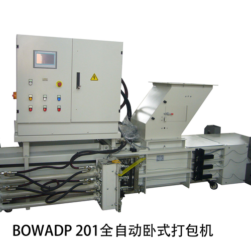 适用于对粉碎后的纸介质打包: 1、采用液压驱动,可选择手动或PLC自动控制操作; 2、配合7500系列联合工作,实现粉碎工作和压缩打包一体化程序控制; 3、全自动压缩捆包无人化作业,适合物料较多的场所; 4、纸介质经压缩后,自动铁丝捆包,容易储存堆放及降低运输成本; 5、自动捆包装置,速度快,结构简单,动作稳定,故障率低且易于保养; 6、自动加料检测、穿铁丝,自动捆扎、自动剪断、自动出包等功能; 7、底部采用专用地脚设计,可配备滚轮方便移动; 8、加料口带剪切刀,剪切效能高; 9、低噪音液压回路设计,高效能低故障; 10、卧式结构,可配输送带加料或人工加料;