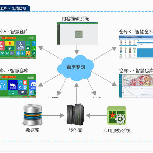 智慧仓库是一款带有智能交互,集智慧安防、智慧储供、智慧育人、智慧施训、智慧管理、智慧生活于一体的多媒体信息管理平台。适用于省军区装备的多级管理,覆盖省军区、军分区(含警备区)及武装部的装备仓库。实现仓库安防、教育培训、人员管理、仿真训练、物资管理、信息资源共享、装备量化掌控,为上级部门指挥决策提供信息支撑。