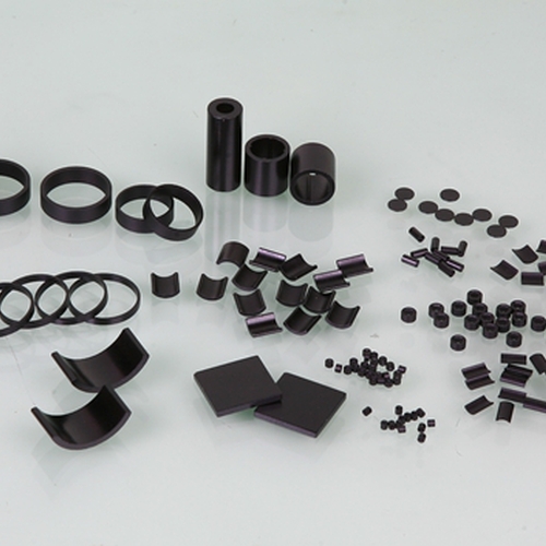 粘结钕铁硼磁体是将钕铁硼磁粉和粘结剂均匀混合成粉末,然后在一定的压力下将粉末压制成所需形状和尺寸的生坯,并经固化、研磨光饰和表面涂装而制成的。粘结钕铁硼磁体具有磁性能较高、成本低、尺寸精度和一致性好、形状自由度大等优点,但其使用温度不高,低于180℃。