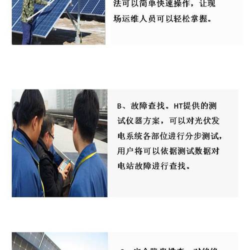 SOLAR I-V是设计用于试离网型(单相)太阳能光伏 辐照功率,进一步计算出直流侧的功率损耗,这样 就可以对电池方阵的性能进行验证。更可贵的是SOLARI-V 还可以现场测试太阳能电池组/串的I-V特性曲线,以判定 组件/串的性能好坏。仪器还可以把现场测试的数据保存到内置的数据存储器,有效期通过专用的Windows软件下载到个人电脑 使用SOLAR I-V,可立即发现系统的问题以快速的进行分析和判定。