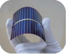 薄膜太阳电池:柔性硅薄膜太阳电池是沉积在聚酰亚胺衬底上的硅基薄膜太阳电池,具有可卷曲、轻质的特点。在能源、环境、航空航天、国防、光伏建筑一体化、便携式光伏产品等方面都具有广泛的应用前景。 薄硅太阳电池:高效薄化单晶硅太阳电池是一种转换效率高、重量轻、厚度薄的单晶硅太阳电池。它采用薄膜化封装方式制备,组件具有仅三百微米厚度和较轻面密度,形成较高的功率质量比水平,且性能稳定,环境耐受性好,特别适合于大面积大功率需求的场合。由于电池厚度较薄,因此电池组件具有一定的可弯曲性,适用于曲率半径较大的刚性或半刚性基底上进行贴敷。