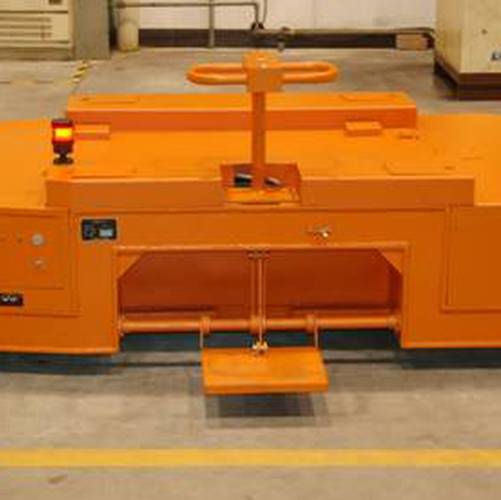 具备轨道、路面两种行驶功能,轨道双向驾驶,采用防爆蓄电池组,运行无排放污染;操作简单,使用可靠,维护方便。座驾式轨道牵引车主要性能指标:额定牵引力5kN;额定牵引载荷20t;牵引速度5km/h;路面行驶速度8km/h;整车重量5.6t;蓄电池组容量30kWh;防爆等级ExdIIBT4。座驾式轨道牵引车主要性能指标:整车重量3000kg;额定牵引力3kN;牵引速度4km/h;额定牵引载荷10t;蓄电池电压48V;蓄电池容量840Ah。