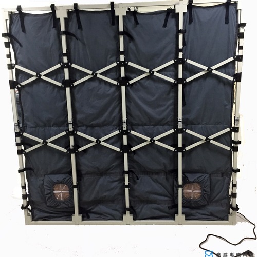 室内框架式电磁屏蔽帐篷具有显著的防电磁信息泄漏、防电磁干扰等功能,具有屏蔽效能高、耐折叠、重量轻、易携带、安装和拆卸便捷等特点。 室内框架式电磁屏蔽帐篷主要由电磁屏蔽帐篷篷身、铝合金帐篷框架、波导通风窗(空调连接口)、电源滤波器、网络滤波器、电话滤波器、波导管、篷内部件等组成。篷身采用一种自主研发的高性能软体电磁屏蔽复合织物材料制作而成,框架采用能快速展开、撤收的折叠式铝合金框架结构,装箱尺寸能满足航空运输要求。