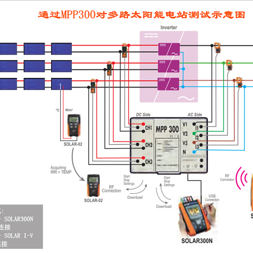 MPP300的设计是为SOLAR300N和SOLAR i-v主机仪器在测试单相和三相系统时,与主机配合使用,以完成对系统多达三路的最大功率的跟踪。还可以检测和分析光伏系统效率低的原因,为系统问题的发现和解决提供了理想的解决方案。