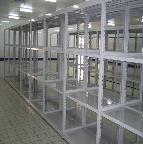中A货架是中型货架系列中常用的一种,由立柱、横梁、宽挂、窄挂、防脱锁联接而成。最上层与最下层层板为固定式,中间任一块层板可调节,节距为50mm,可以使客户根据货物的体积大小来调节间距。