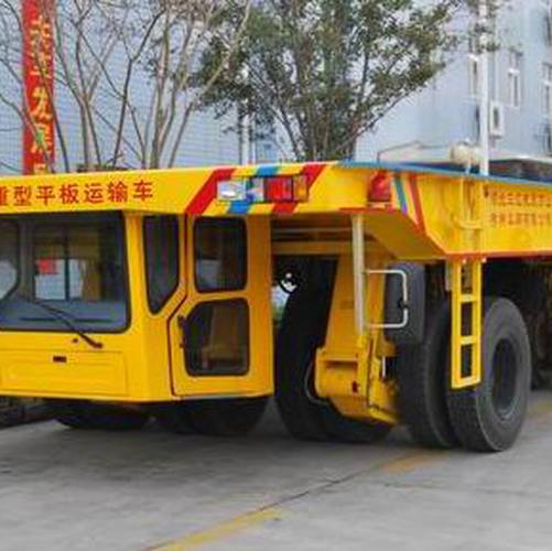 重型平板运输车是以液压悬架技术为基础发展起来的“机、电、液”一体化产品,是以运输重型构件为主的运输装置。全车采用液压驱动、液压悬挂、独立转向和车架液压自动调平等技术。该车以其超强的负载能力和独特的转向特点,被广泛用于造船、公路、铁路、油田、飞机牵引、冶金,以及航天、航空、军事等领域。 2004年初,万山公司利用雄厚的重型越野车开发和制造技术,与武汉理工大学联合开发了第1台WTW90重型平板运输车。经过10年的发展,公司开发的重型平板运输车已形成A、B、C、G、Y五大系列40多个品种,单车载重量为35吨-1000吨,通过多车并连使用,载重量可达几千吨,具有国内领先水平。