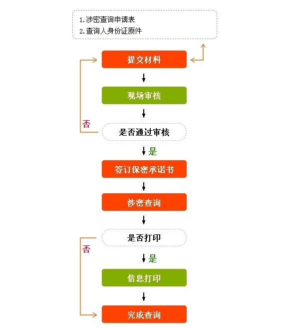 涉密查询流程说明:(必须先注册认证,成为网站认证用户,且具备保密资格证,已开通涉密查询业务)