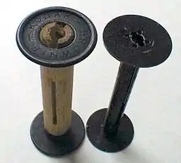 The 120 film format is a roll film which is nominally between 60.7 mm and 61.7 mm wide. Most modern films made today are roughly 61 mm (2.4 inches) wide. The film is held in an open spool originally made of wood with metal flanges, later with all-metal, and finally with all-plastic. The length of the film is nominally between 820 millimetres (32 in) and 850 millimetres (33 in), according to the ISO 732:2000 standard. However, some films may be as short as 760 millimetres (30 in).[1] The film is attached to a piece of backing paper longer and slightly wider than the film. The backing paper protects the film while it is wound on the spool, with enough extra length to allow loading and unloading the roll in daylight without exposing any of the film. Frame number markings for three standard image formats (6×4.5, 6×6, and 6×9 [4:3, 1:1, and 2:3 aspect ratios]; see below) are printed on the backing paper.