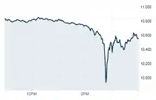 The May 6, 2010, flash crash,[1][2][3] also known as the crash of 2:45 or simply the flash crash, was a United States trillion-dollar[4] flash crash (a type of stock market crash) which started at 2:32 p.m. EDT and lasted for approximately 36 minutes.[5]