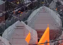 Traps are deliberately placed surrounding the area where players first join the server: pits of lava, areas lit on fire, and portals that lead to lava or enclosed areas of obsidian that force players to disconnect and reconnect, waiting through the long queue again.[2][9] Some players create large obstacles called "lavacasts", in which water and lava are repeatedly poured down staircases of stone, creating mountains of jagged cobblestone.[9] These structures completely surround the spawn area, and many are as tall as the map's height limit.[6]