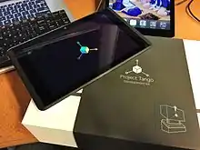 The Tango Platform is an augmented reality computing platform, developed and authored by the Advanced Technology and Projects (ATAP), a skunkworks division of Google. It uses computer vision and internal sensors (like gyroscopes) to enable mobile devices, such as smartphones and tablets, to detect their position relative to the world around them without using GPS or other external signals. It can therefore be used to provide 6-DOF input which can also be combined with its multi-touch screen.[8] The Google Tango devices can be seen as more integrated solutions than the early prototypes combining spatially-tracked devices with touch-enabled-screens for 3D environments.[9][10][11]
