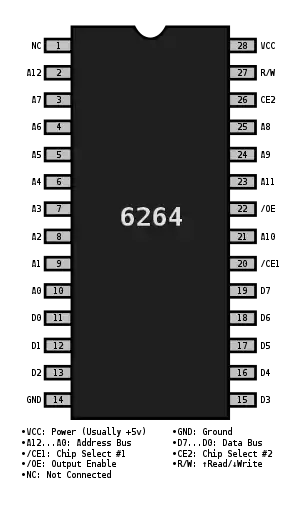 Pinout of the 6264 SRAM IC