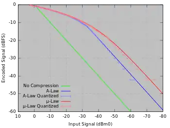 For a given input , the equation for A-law encoding is as follows: