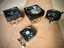 AMD Wraith is a family of downdraft type CPU coolers designed by AMD. The Wraith was introduced as a heatpipe-equipped stock cooler for certain AMD FX CPUs and AMD A-series APUs. With the launch of AMD Ryzen, the Wraith lineup has been updated to four new variants, varying in design, cooling capabilities, and lighting features. They are bundled in many of AMD's Socket AM4 & Socket AM5-based products except their high-end and high-powered Ryzen CPU line-up. The coolers were supplied by several manufacturers such as Cooler Master, Foxconn, and Delta Electronics.