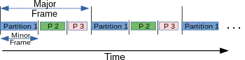 The standard defines a two-level hierarchical schedule. The first level schedules the partitions. This is a round-robin, fixed schedule that repeats a Major Time Frame. The Major Time Frame schedules each partition in a fixed duration Minor Time Frame with a fixed offset from the start of the Major Time Frame.