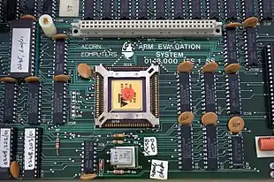 In the late 1980s, Apple Computer and VLSI Technology started working with Acorn on newer versions of the ARM core. In 1990, Acorn spun off the design team into a new company named Advanced RISC Machines Ltd.,[46][47][48] which became ARM Ltd. when its parent company, Arm Holdings plc, floated on the London Stock Exchange and Nasdaq in 1998.[49] The new Apple–ARM work would eventually evolve into the ARM6, first released in early 1992. Apple used the ARM6-based ARM610 as the basis for their Apple Newton PDA.