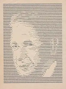 In the 1960s, Andries van Dam published a representation of an electronic circuit produced on an IBM 1403 line printer.[9] At the same time, Kenneth Knowlton was producing realistic images, also on line printers, by overprinting several characters on top of one another.[2] Note that it was not ASCII art in a sense that the 1403 was driven by an EBCDIC-coded platform and the character sets and trains available on the 1403 were derived from EBCDIC rather than ASCII, despite some glyphs commonalities.