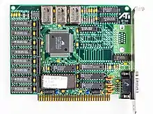 The ATI Wonder is a series of video cards for the IBM Personal Computer and compatibles, introduced by ATI Technologies in the mid to late 1980s.[1][2][3] These cards were unique at the time as they offered the end user a considerable amount of value by combining support for multiple graphics standards (and monitors) into a single card. The VGA Wonder series added additional value with the inclusion of a bus mouse port,[4] which normally required the installation of a dedicated Microsoft Mouse adapter.