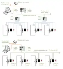 2. Serial main and sub-controllers. All door hardware is connected to sub-controllers (a.k.a. door controllers or door interfaces). Sub-controllers usually do not make access decisions, and instead forward all requests to the main controllers. Main controllers usually support from 16 to 32 sub-controllers.