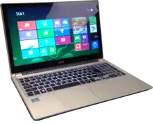 The Acer Aspire V5 is notebook available in 14 and 15.6 inches and comes with a silver scratch resistant exterior. Released in 2012. It comes configured with a 1.7GHz Intel Core i5-3317M, 4GB, 1600MHz DDR3 of ram, and Windows 8. It is considerably slim and is offered in both 10-point multi-touch and non-touch variants. The V5 comes with a HD display with a resolution of 1366×768 pixels and a webcam on top.[30]