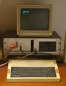 The Acorn System 3[11][12][13] added a floppy disk controller card, floppy disk drive, and disk operating system ROM, replacing the cassette interface card and cassette operating system of the System 2 machine.