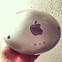 AirPort debuted in 1999, as "one more thing" at Macworld New York, with Steve Jobs surfing the web on an iBook using wireless internet technology for the very first time in a public demo of an Apple laptop.[4] The initial offering consisted of an optional expansion card for Apple's new line of iBook notebooks and an AirPort Base Station. The AirPort card (a repackaged Lucent ORiNOCO Gold Card PC Card adapter) was later added as an option for almost all of Apple's product line, including PowerBooks, eMacs, iMacs, and Power Macs. Only Xserves did not have it as a standard or optional feature. The original AirPort system allowed transfer rates up to 11 Mbit/s and was commonly used to share Internet access and files between multiple computers.