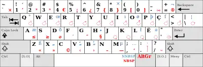 The JLG Extended Keyboard Layout is a layout working on a US keyboard layout. This layout allows use of all specific Albanian characters.
