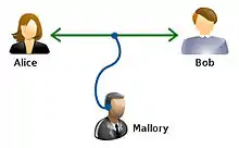 | Mallory[19][20][21] or (less commonly) Mallet[22][23][24][25] or Darth[26] | A malicious attacker. Associated with Trudy, an intruder. Unlike the passive Eve, Mallory is an active attacker (often used in man-in-the-middle attacks), who can modify messages, substitute messages, or replay old messages. The difficulty of securing a system against a Mallory is much greater than against an Eve. |