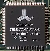 Although SRAM and DRAM remained Alliance's dominant focus, the company began diversifying slightly in the mid-1990s after acquiring Nimbus Technology, a GPU designer, in 1993. In 1995, they debuted the first of their ProMotion graphics adapter cards.[9] Sales of ProMotion cards represented 10 percent of Alliance's total sales in 1995.[10]