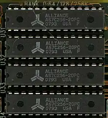 Alliance Semiconductor Corporation was founded in Cupertino, California, by N. Damodar "Dan" Reddy and C. N. "Nick" Reddy in 1985.[1][2] Both men were brothers who had emigrated to the United States from India in the 1960s to receive advanced electrical engineering degrees.[3] N. Damodar Reddy, the elder of the two, had worked in the semiconductor industry designing a variety of circuits since 1969, working at firms such as Synertek, Fairchild, RCA, and Four-Phase, before founding Alliance.[4][5]: 109 C. N. Reddy meanwhile had worked strictly on memory circuit design for Texas Instruments and Cypress Semiconductor since the late 1970s.[5]: 109 In 1987, by which point it had relocated to San Jose, California, the company patented a high-speed 1-Mb dynamic RAM (DRAM) chip,[5]: 107 licensing the rights to fabricate the chip to Japan-based Minebea in 1988.[3]