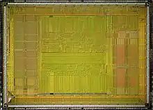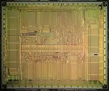 The 21064 contained 1.68 million transistors.[14] The original EV4 was fabricated by Digital in its CMOS-4 process, which has a 0.75 μm feature size and three levels of aluminium interconnect.[14] The EV4 measures 13.9 mm by 16.8 mm, for an area of 233.52 mm2. The later EV4S was fabricated in CMOS-4S, a 10% optical shrink of CMOS-4 with a 0.675 μm feature size. This version measured 12.4 mm by 15.0 mm, for an area 186 mm2.[15]