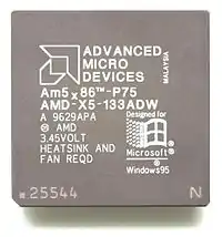 The Am5x86 processor is an x86-compatible CPU announced in November of 1995 by AMD for use in 486-class computer systems.[1] It began shipping in December of 1995, with a base price of $93 per unit in bulk quantities.[2] Before being released, it was in development under the codename "X5".[3]