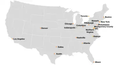 - New York City, New York (West Midtown Manhattan, Financial District, Brooklyn Tech Triangle, Long Island City)[49]