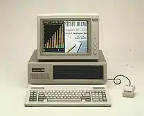 American Computer and Peripheral was founded in Santa Ana in April 1985 by Alan Lau.[3] Among the company's first offerings were a duo of IBM PC clones: the American XTSR and the American 286. These clones were introduced in May 1986 and were clones of IBM's PC XT and PC/AT, respectively. The clock speed of the XTSR's Intel 8088 microprocessor was selectable, allowing users to change it from 4.77 MHz to 7.37 MHz.[4] The module that allowed this selection of clock speeds was later sold separately as the American Turbo.[5][lower-alpha 1] The American 286 featured a motherboard in the Baby AT form factor with five expansion slots house in the same case as the American XTSR.[6] AC&P later introduced the American 286-A, an AT clone with a full-sized AT motherboard, featuring eight expansion slots.[7] AC&P hired Chi Yeung, previously a designer for Eagle Computer before the company went out of business in 1986, to design the 286-A.[8] Both it and the regular 286 ran the Intel 80286, with clock speeds selectable from 6 MHz to 8 MHz.[9] In June 1986, the company released the Abovefunction multifunction board that allows the PC, PC XT and compatibles to address up to 2 MB of RAM, as well as adding ports for joysticks and serial and peripheral devices.[10] A year later, the company introduced the American 386-16, an i386-based desktop computer that touted superiority over other 386 clones due to its use of zero-wait states when accessing video and making system calls to the BIOS for peripheral access.[11]