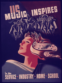 By 1940, 80% of American households would own a radio;[1] making American music far more accessible to civilians and soldiers alike. Although the radio could be used to boost American morale, the American Government censored radio channels in fear that enemy agents may be sending coded messages through song requests on the stations.[2]