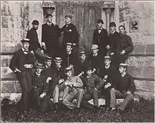 The club was founded as a student-directed double quartet in the spring semester of 1865 by Amherst senior Thomas E. Babb, in the spirit of Amherst's recently dissolved Donizetti Glee Club, founded in 1862.[1] Though the group nearly disbanded two years later when all but one of its members graduated, it was revived in 1868 after one lone year of inactivity. It continued to flirt with dissolution — some years being quite active and successful and others less so — until the fall of 1876 when it came under the professional direction and training of "Professor" Friedrich Zuchtmann, a vocal instructor from Springfield, Massachusetts. Under his leadership the club found more firm footing and soon became a permanent fixture of Amherst College life.