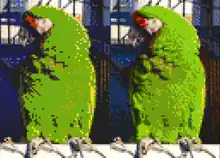 This mode uses six bitplanes (six bits per pixel).[3][5][6] The first five bitplanes index 32 colors selected from a 12-bit color space of 4096 possible colors. If the bit on the sixth bitplane is set, the display hardware halves the brightness of the corresponding color component.[7] This way 64 simultaneous colors are possible (32 arbitrary colors plus 32 half-bright components) while only using 32 color registers.[8] The number of color registers is a hardware limitation of pre-AGA chipsets used in Amiga computers.