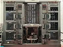 A 1960 Newmark analogue computer, made up of five units. This computer was used to solve differential equations and is currently housed at the Cambridge Museum of Technology.