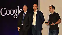 On September 23, 2008, Android was introduced by Andy Rubin, Larry Page, Sergey Brin, Cole Brodman, Christopher Schlaeffer and Peter Chou at a press conference in a New York subway station.[36]