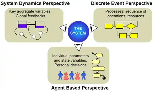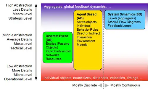 The tool was named AnyLogic, because it supported all three well-known modeling approaches: system dynamics,[15] discrete event simulation,[27] Agent-based modeling.[28] and any combination of these approaches within a single model.[29][30] The first version of AnyLogic was V4,[31] because the numbering continues the numbering of COVERS 3.0.
