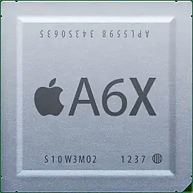 The Apple A6X is a 32-bit system-on-a-chip (SoC) designed by Apple Inc., introduced at the launch of the 4th generation iPad on October 23, 2012. It is a high-performance variant of the Apple A6 and the last 32-bit chip Apple used on an iOS device before Apple switched to 64-bit. Apple claims the A6X has twice the CPU performance and up to twice the graphics performance of its predecessor, the Apple A5X.[6] Software updates for the 4th generation iPad ended in 2019 with the release of iOS 10.3.4 for cellular models, thus ceasing support for this chip as it was discontinued with the release of iOS 11 in 2017.