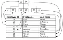 Btrieve uses a b-tree format to store record indexes on particular table columns. The index maps each set of indexed column values to the set of unique identifiers for the rows that have those column values, which provides a quick way to find the rows within a table using the indexed column. B-trees are tree data structures and are very efficient as a mechanism for fast data retrieval. The drawback of a btree is that data must be constantly balanced when it is inserted into the tree, therefore Btrieve only stores the record index as btree to reduce the amount of time it takes to insert and update records. A separate b-tree is kept for each index in the system, and the root node information is kept in the FCR. In Btrieve 6.x a new index can be created at file creation time, or added and dropped after the file is created. Index pages are also created as they are needed. Before Btrieve 6.0 existing key indexes could not be removed, though supplemental indexes could be created and dropped as needed.