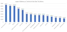 AO3 reached one million works (including stories, art pieces, and podcast fic recordings, referred to as podfics) in February 2014. At that time, the site hosted works representing 14,353 fandoms, the largest of which were the Marvel Cinematic Universe (MCU), Supernatural, Sherlock, and Harry Potter.[6] In July 2019 it was announced that the site had 2 million registered users and 5 million posted works.[42] Of the top 100 character pairings written about in fic on the site in 2014, 71 were male/male slash fiction and the majority of character pairings featured white characters.[43] In 2016, about 14% of fics hosted on the site took place in an alternative universe (often shortened to AU) in which characters from a particular canon are transplanted into a different context.[44] The length of a story on Archive of Our Own tends to correlate with its popularity. Stories of 1,000 words often received fewer than 150 hits on average while stories that were closer in length to a novel were viewed closer to 1,500 times apiece.[25]