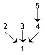 Intermediate conclusions or sub-conclusions, where a claim is supported by another claim that is used in turn to support some further claim, i.e. the final conclusion or another intermediate conclusion: In the following diagram, statement 4 is an intermediate conclusion in that it is a conclusion in relation to statement 5 but is a premise in relation to the final conclusion, i.e. statement 1. An argument with this structure is sometimes called a complex argument. If there is a single chain of claims containing at least one intermediate conclusion, the argument is sometimes described as a serial argument or a chain argument.[11]