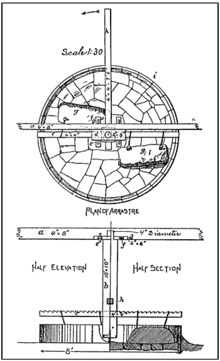 Arrastras were widely used throughout the Mediterranean region since Phoenician times.[1] The Spanish introduced the arrastra to the New World in the 16th century. The word "arrastra" comes from the Spanish language arrastrar, meaning to drag along the ground.[2] Arrastras were suitable for use in small or remote mines, since they could be built from local materials and required little investment capital.[2][3]