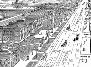 {{cite book}}:|work=ignored (help) - ↑ "The Art Institute – The Western Art Movement and its Splendid Achievements in Chicago – The New Home of the Fine Arts – The Ward Collection – The Century, Harper's - The Formal Opening of the New Museum – The Loan Collection – A Noble Triumph". The (Chicago) Inter Ocean. XVI (239): 9. November 20, 1887.